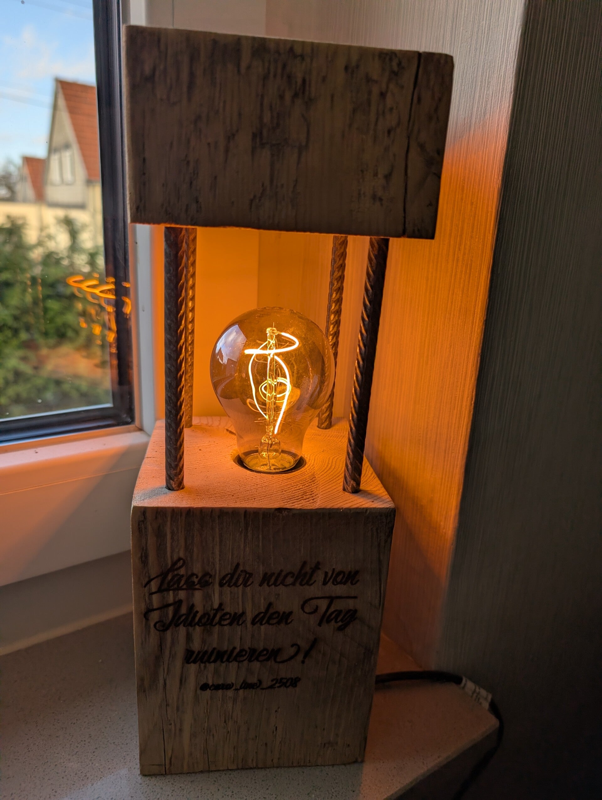 Meine handgefertigten Echtholzlampen bringen Wärme und Natürlichkeit in jeden Raum. Jede Lampe ist ein Unikat, gefertigt aus sorgfältig ausgewähltem Holz. Entdecke deine perfekte Lampe, die dein Zuhause in ein gemütliches Licht taucht.