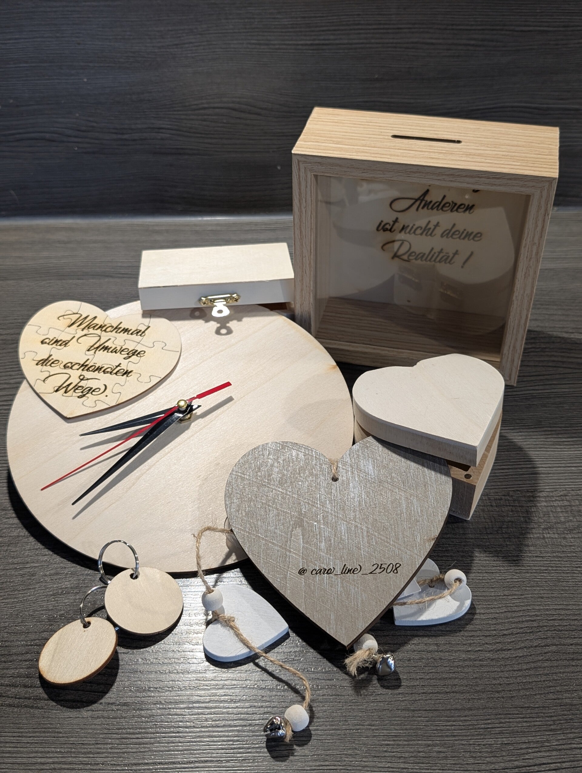 Hier bis du genau richtig! Holzbasteleien mit individuellen Sprüchen und Gravuren. Ob eine Aufbewahrungsbox für wertvolle Erinnerungen, eine Spardose für den nächsten großen Traum oder ein dekorativer Baumstamm als Blickfang – ich setze deine Ideen in die Realität um. Jedes Produkt wird mit Sorgfalt und Liebe zum Detail gefertigt, um ein wirklich einzigartiges Geschenk zu schaffen.
